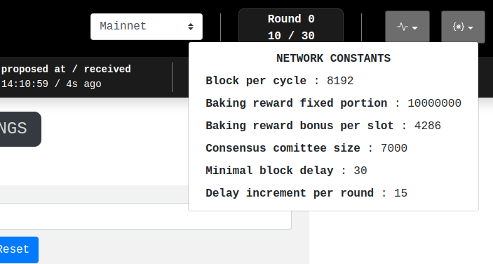 From our experiences while debugging either the consensus or a general problem about the network, we know that it is always valuable to have quick access to a few constants, especially the ones related to the round's delay.